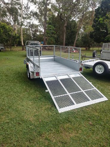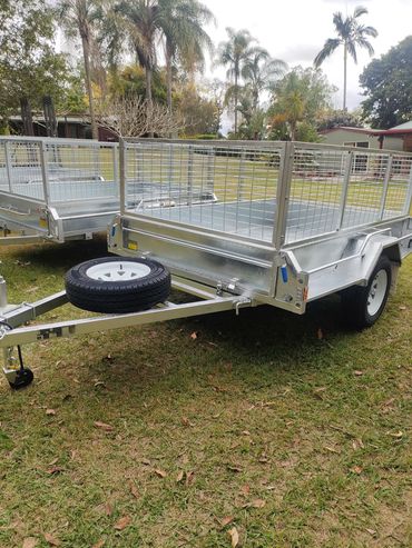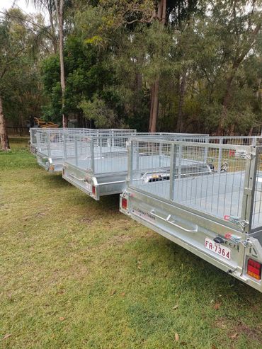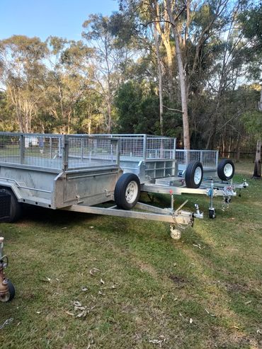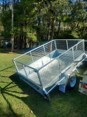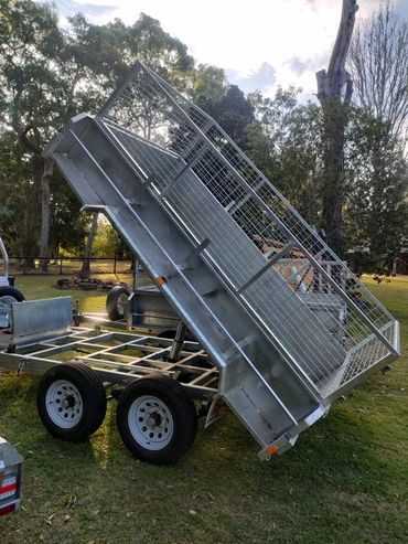 We have 7x5 and 8x5 manual tipping trailers all with cages, 10x5